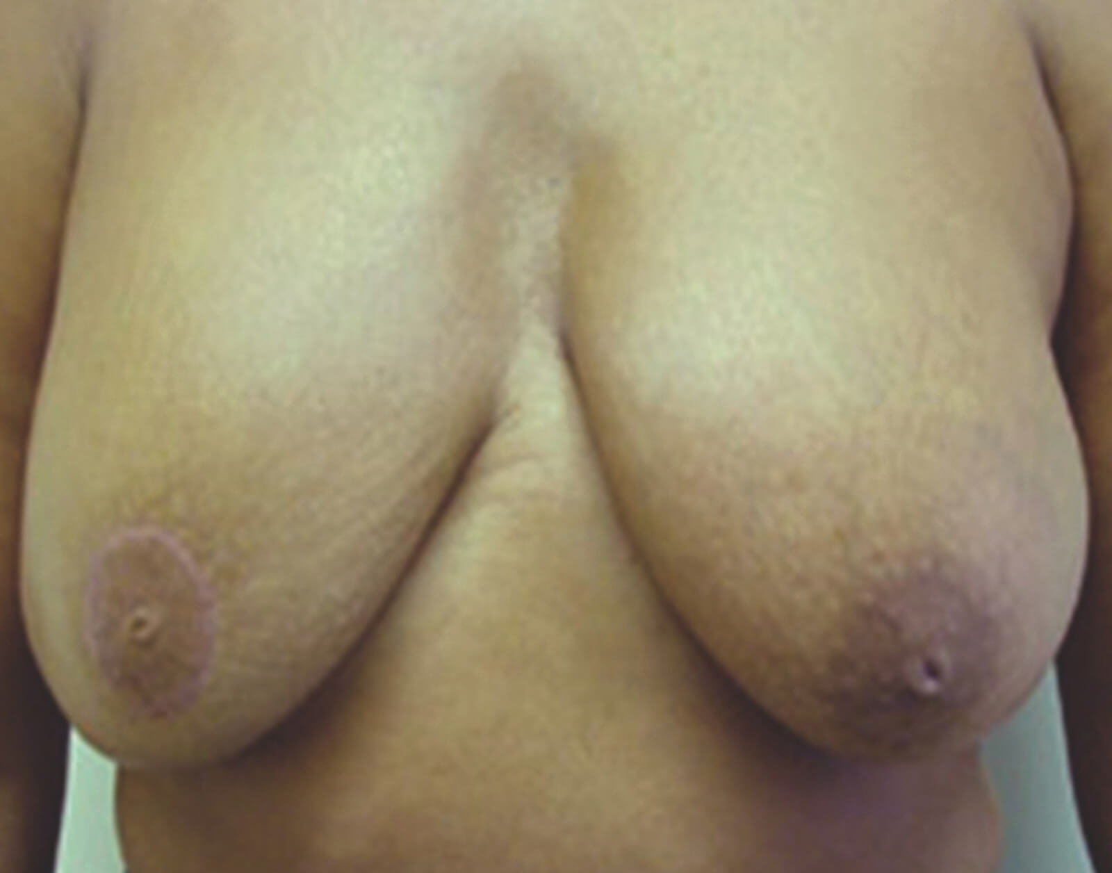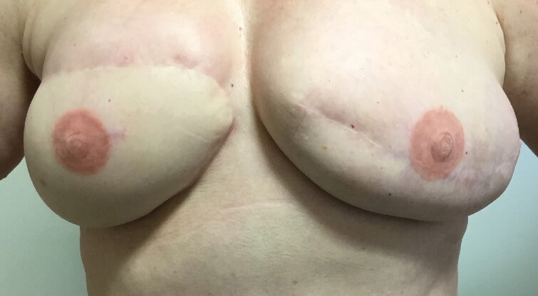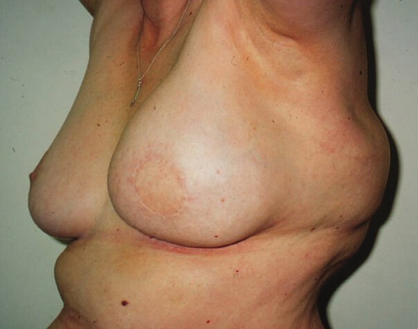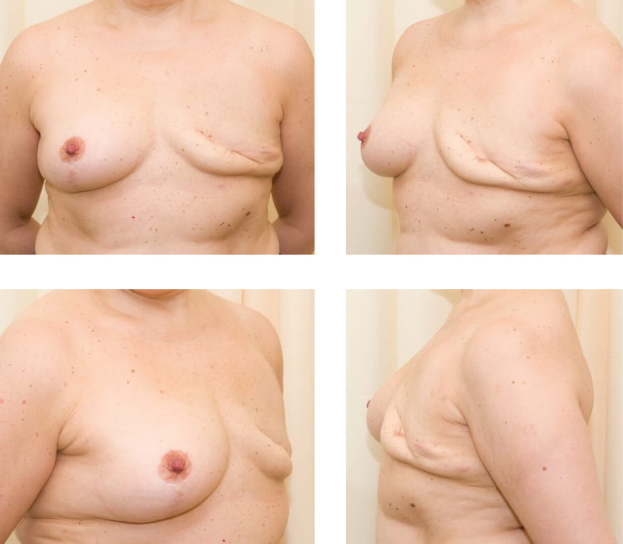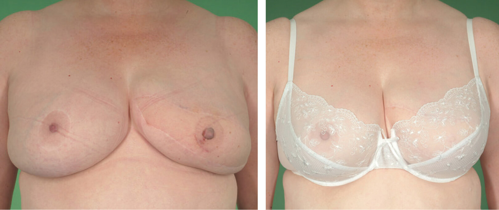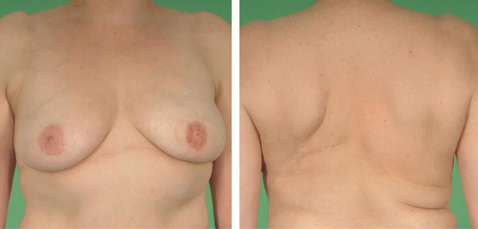 Figure 1.3 – Right mastectomy and delayed reconstruction with tissue from the back together with an implant. The left breast has been reduced, giving a balanced result.