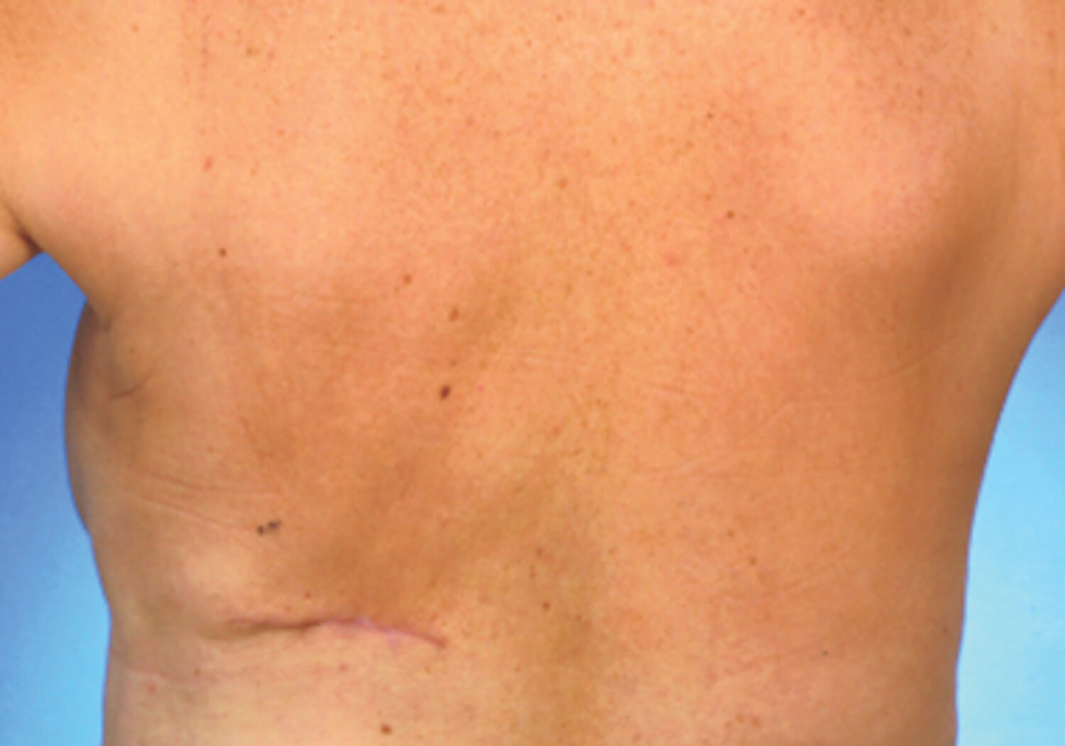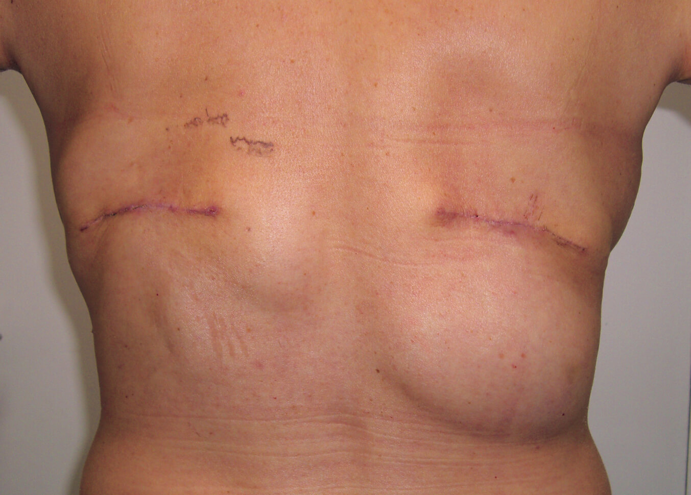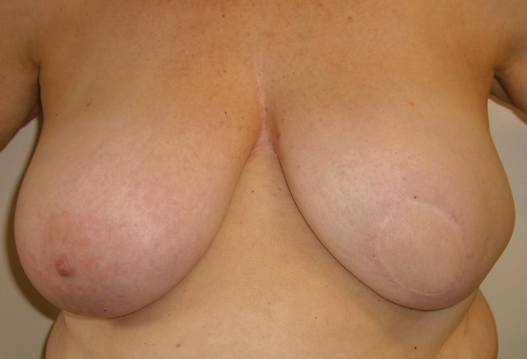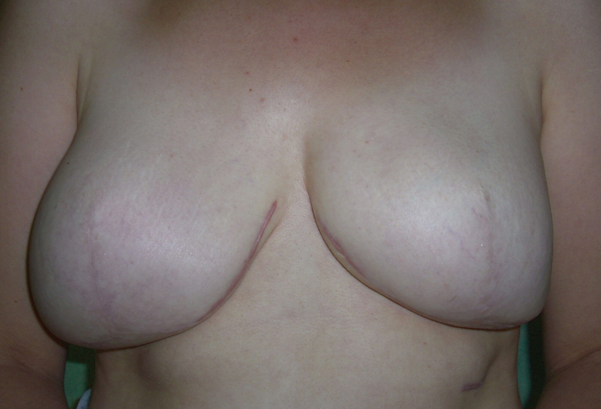 Figure 1.3 – Right mastectomy and delayed reconstruction with tissue from the back together with an implant. The left breast has been reduced, giving a balanced result.