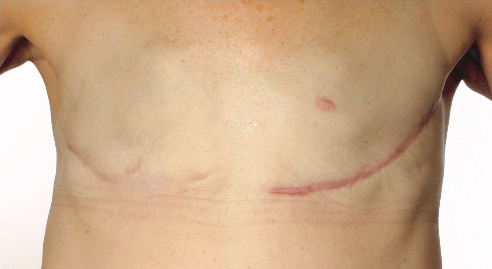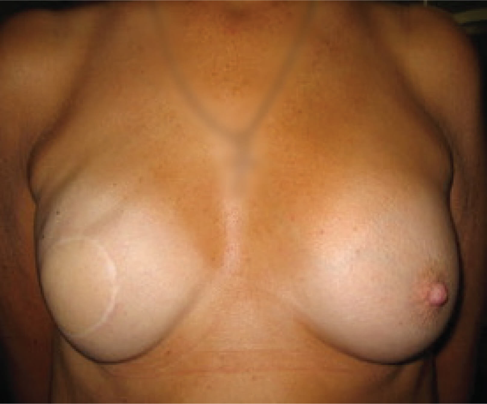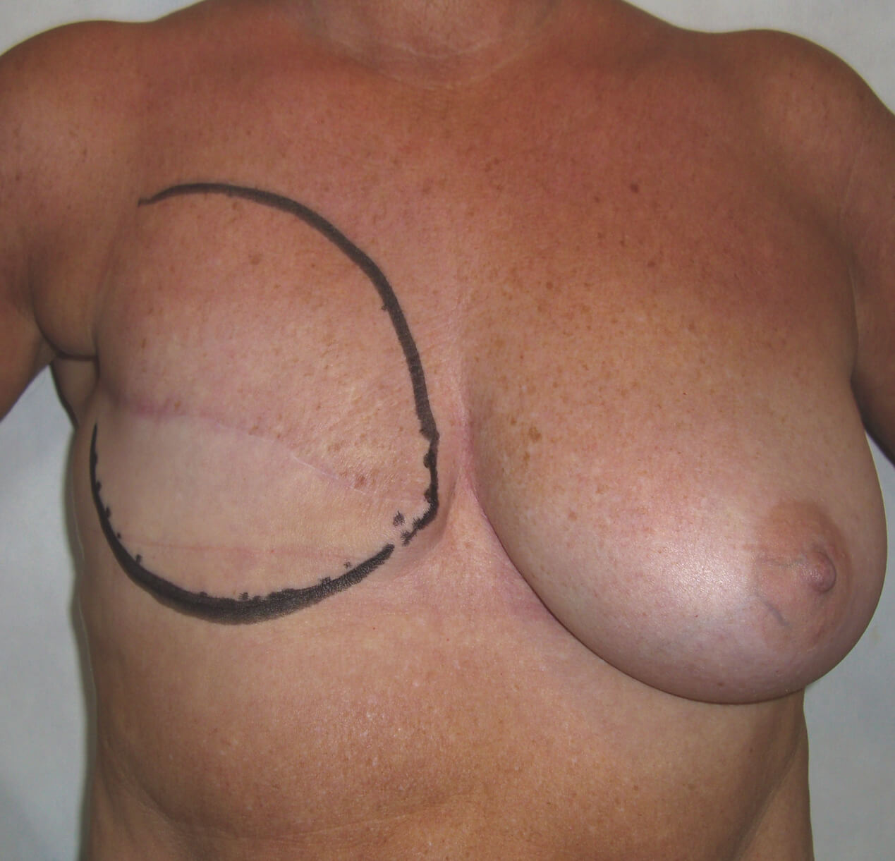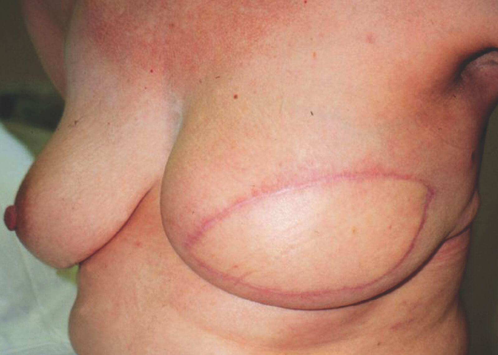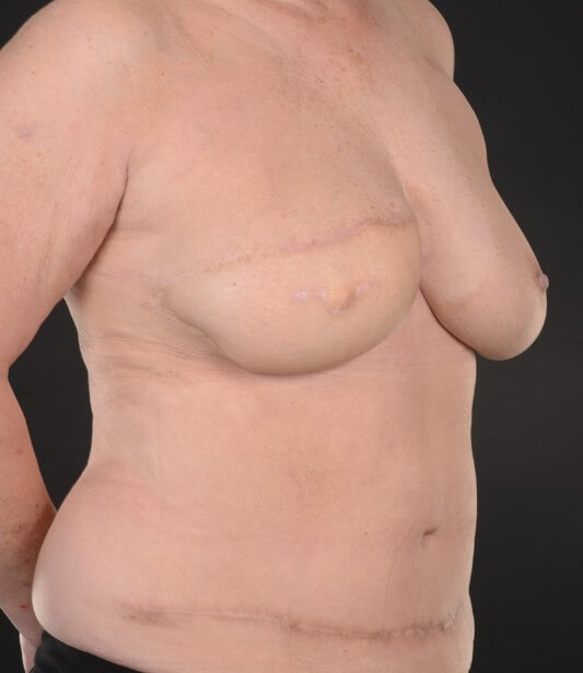 Figure 1.1 – Right mastectomy and reconstruction with tummy tissue leaving invisible scars.