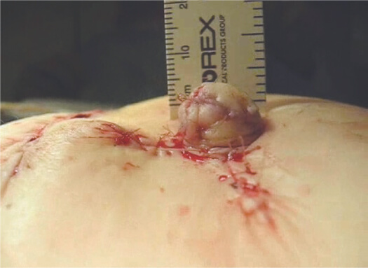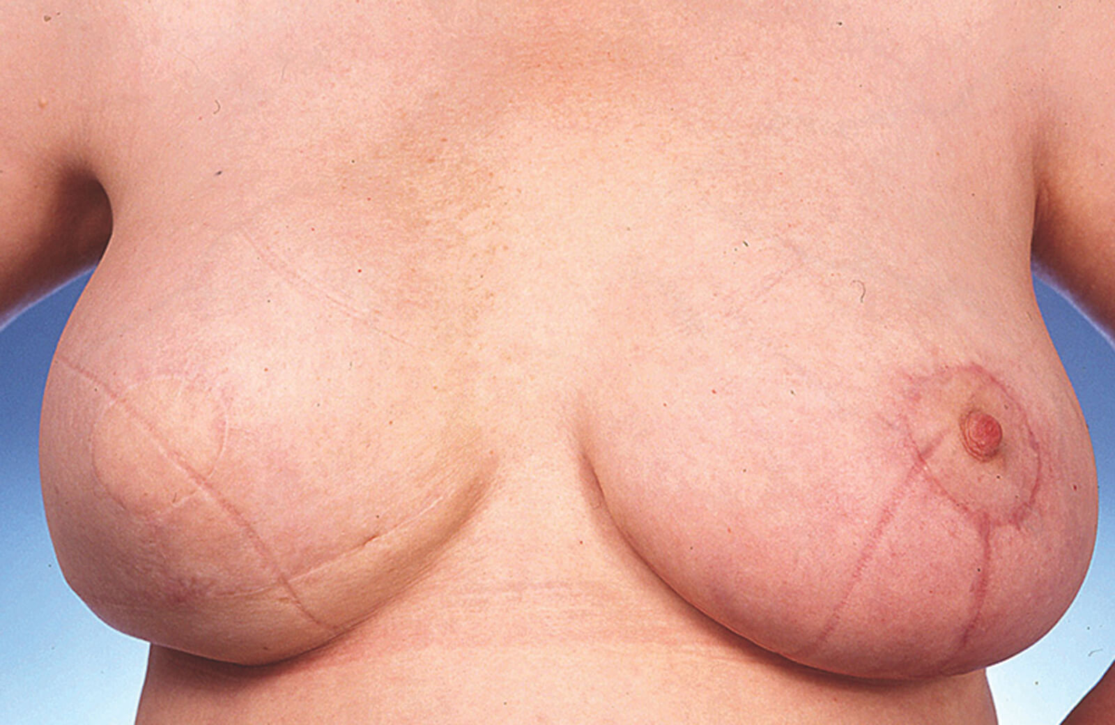 What does breast reconstruction mean? How can an organ as complicated as the breast be recreated and when can this be done? These are key questions that often go unasked and unanswered because those looking after you may think you know the answers already – but very often you don’t. Put simply, breast reconstruction is an operation in which the breast that has been taken away is replaced with something that looks like the real thing. With modern techniques surgeons can make a new breast that looks extremely lifelike – so much so that you may have to look very hard indeed to spot the difference. This is because some patients have their whole breast removed through such a small cut around the nipple that the surgeon can rebuild the new breast inside the natural skin pocket. This can leave just a tiny and almost invisible scar around the edge of the nipple (Figure 1.1).