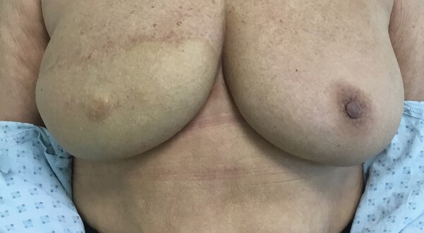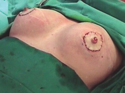 Figure 1.2 – Left mastectomy and immediate reconstruction with tissue from the back. Patient deciding whether to have her nipple reconstructed.