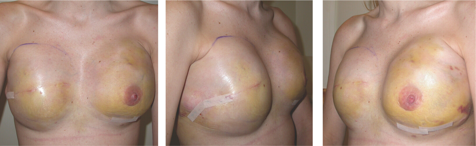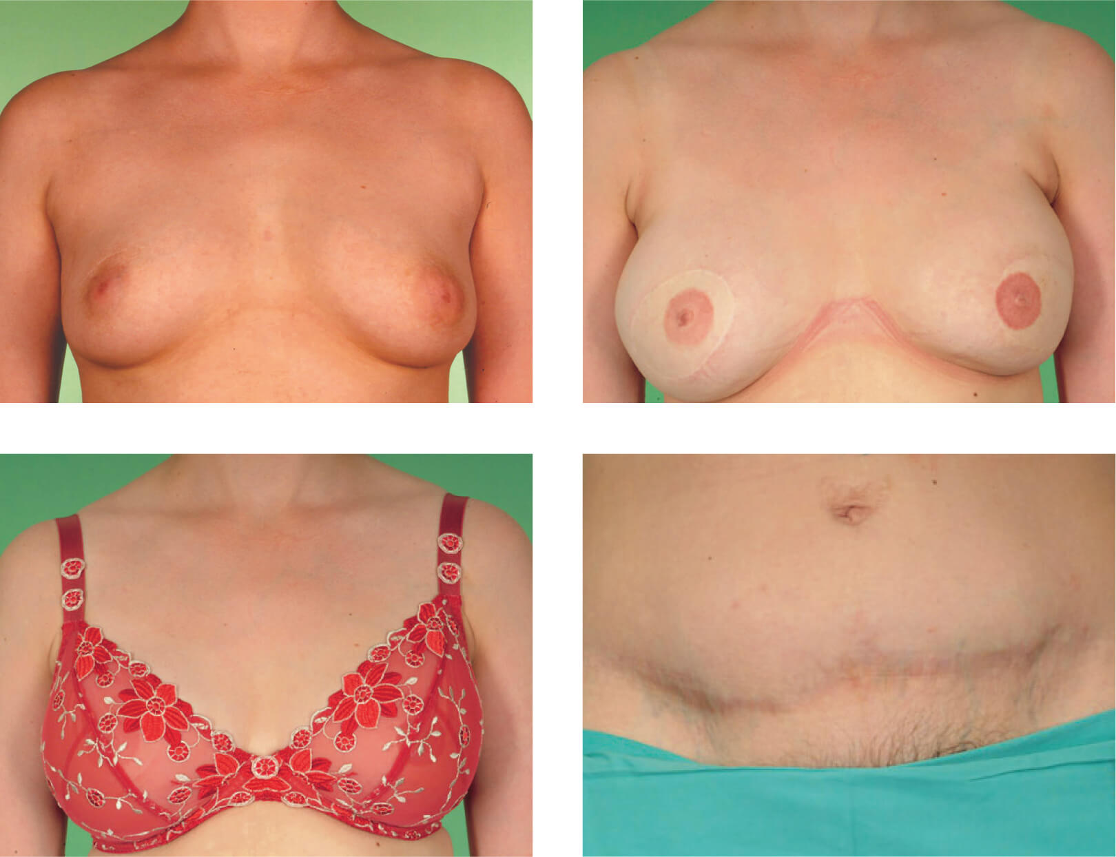 One of the most important unasked questions about breast reconstruction is ‘When can it be done?’ All too often you don’t think about asking or don’t know about the possibility, and there are so many other important things going through your mind before you have to come in for surgery. It’s just one question too many. But if you’re interested in reconstruction, the time to ask your surgeon and your team is before you have your mastectomy. This is because it may be possible to rebuild your breast at the same time as your cancer surgery is carried out. This will depend on so many things – your choice, your health, your tumour, your surgeon and the type of treatment planned after your operation. But if you don’t ask the question, you may simply miss a big opportunity to have this type of surgery. And by having your breast reconstructed during your mastectomy operation (immediate breast reconstruction), you’ll cut down on the number of operations, the length of your convalescence and time off work. And you’ll also avoid much of the distress experienced by women who lose a breast without reconstruction (Figure 1.2).